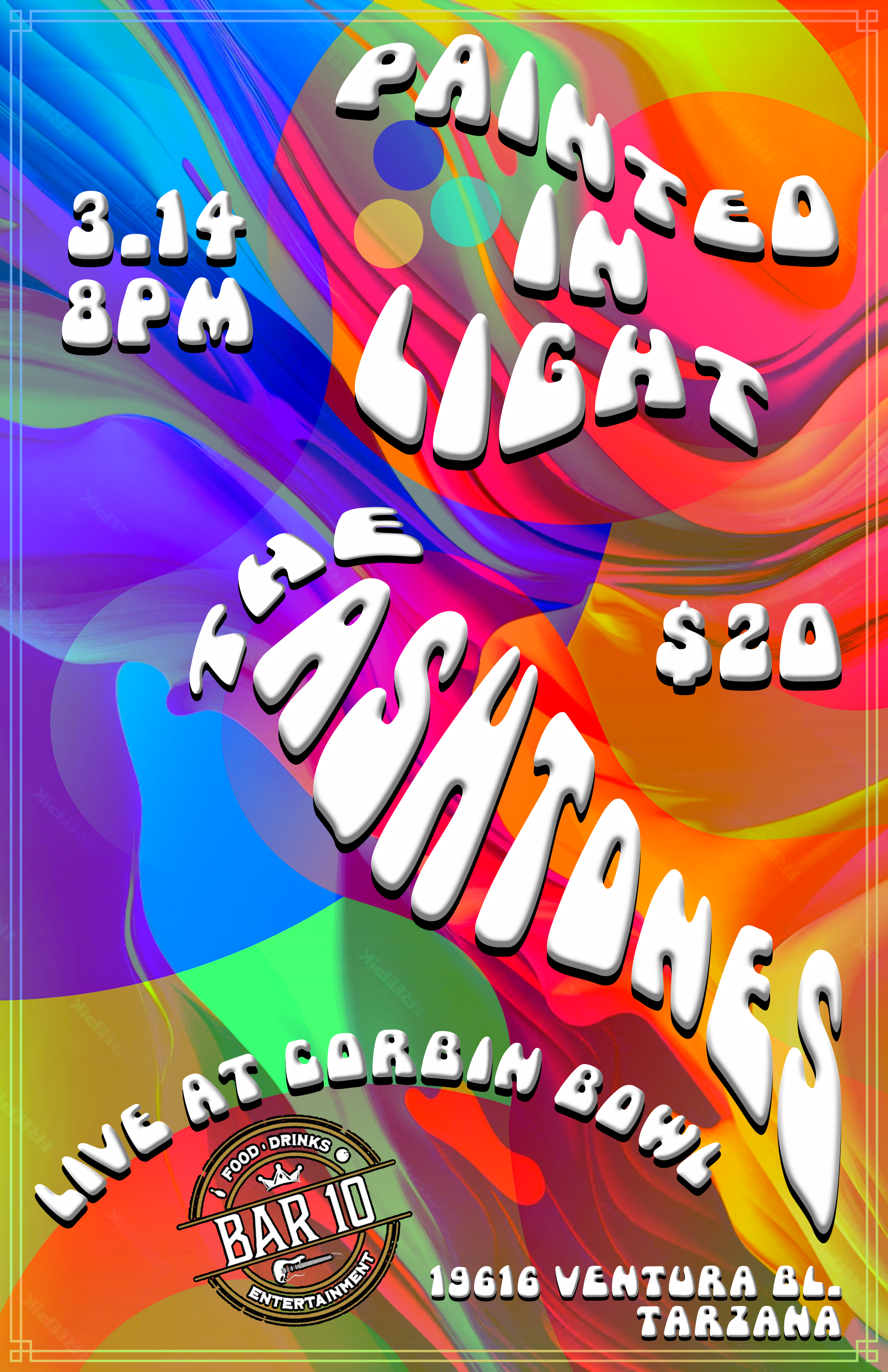 The Ashtones, Painted in Light Saturday, March 14, 2026 8:00 PM 11:30 PM 20:00 23:30 Corbin Bowl 19616 Ventura Blvd Tarzana United States (map) Google Calendar ICS The Ashtones, Painted in Light8pm$20 at the door18+ Full bar (21+) and Corbin Cafe restaurant. Free parkingFollow BAR 10 for exciting updates, giveaways & more! @BAR10ATCORBIN