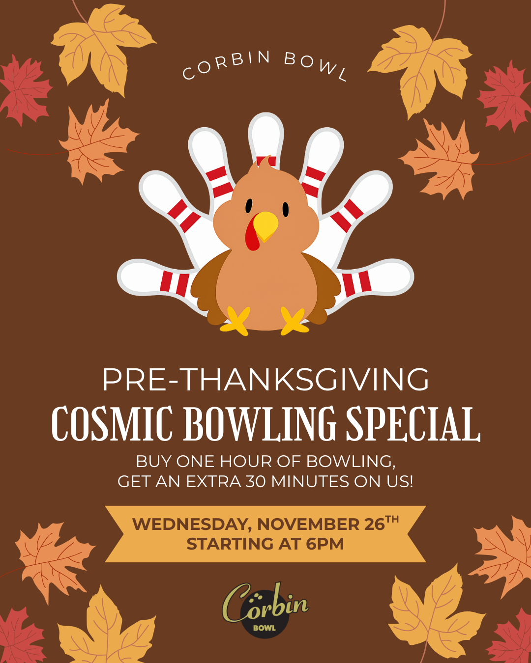 Kick off your Thanksgiving break at Corbin Bowl with the perfect pre-feast pre-game!